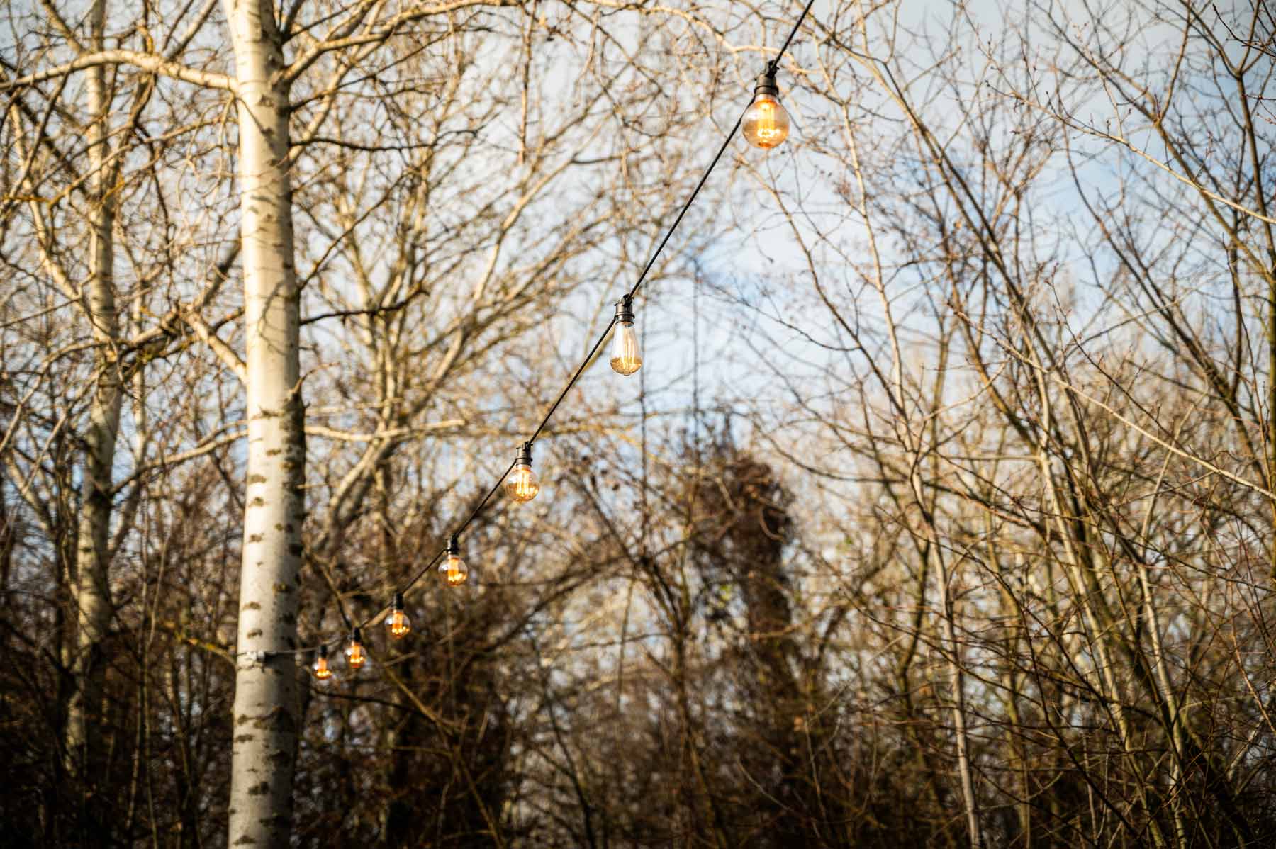 Keď sa zotmie, rozsvietiš si svetlo podľa nálady — jemné, teplé, ideálne na pokojný večer v lese.