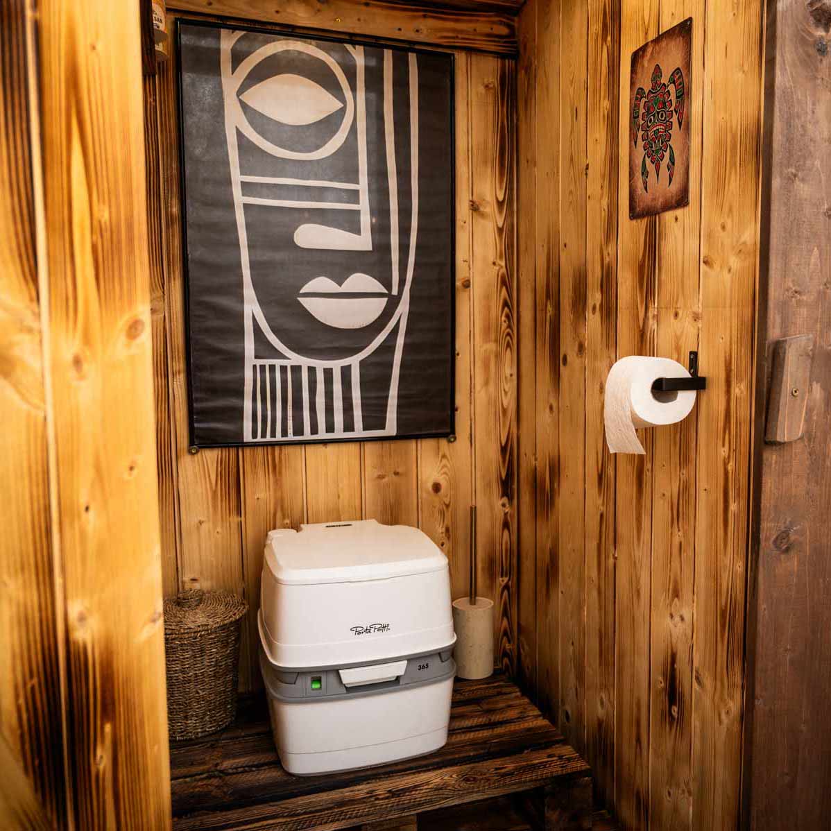 Komfortná a čistá chemická toaleta priamo pri stane.